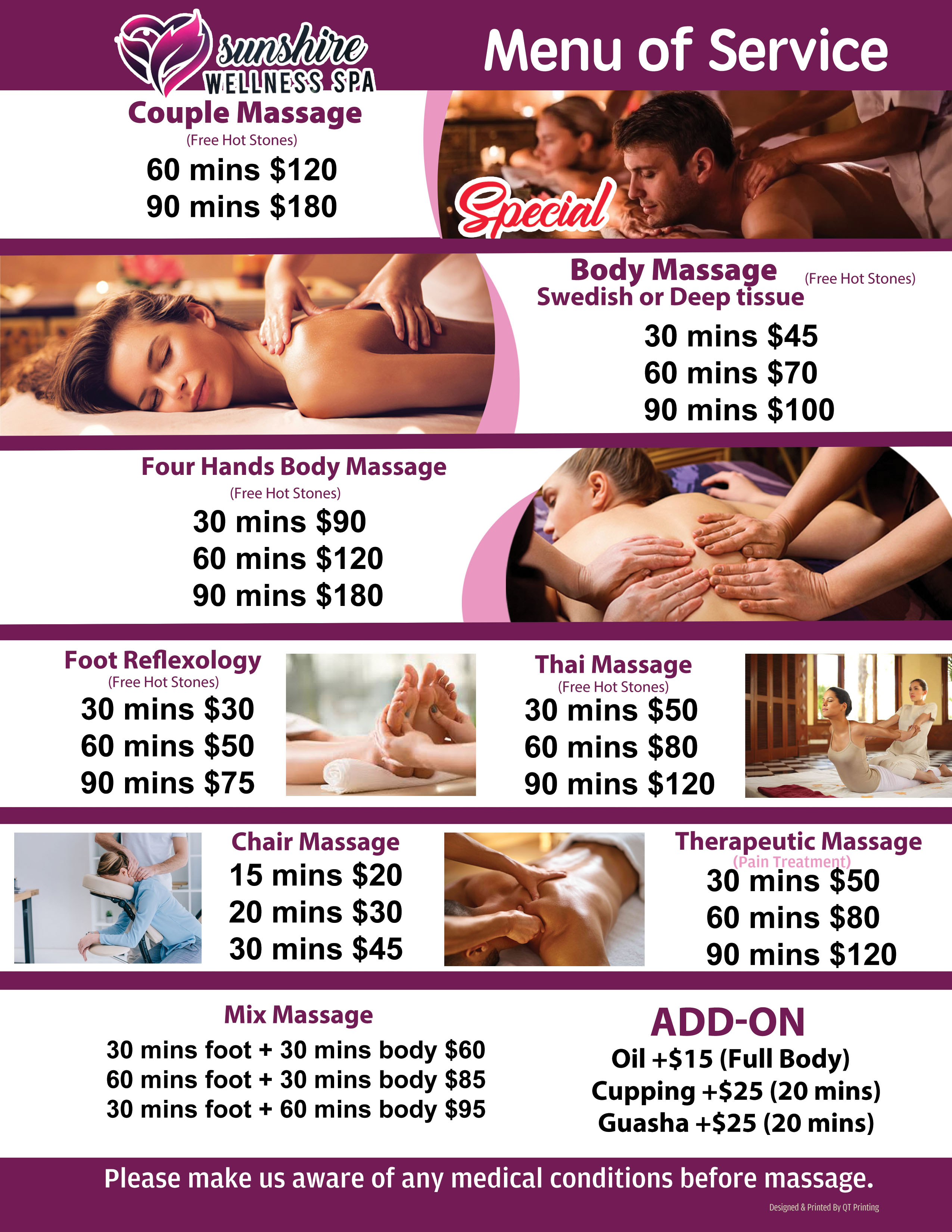 Our massage center offers professional and personalized treatments delivered by trained and certified therapists. We provide a wide range of services, including body massage, head therapy, foot reflexology, and spa treatments, designed to relieve stress, ease muscle tension, and promote overall well-being.